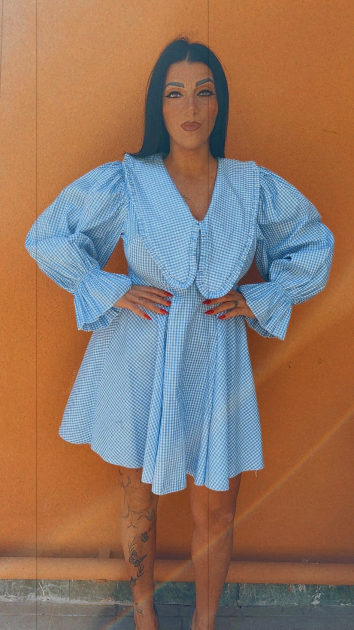 Vestito colletto con maniche a palloncino con cuciture vita e polsi con cerniera dietro,vestre fino a una 44/46